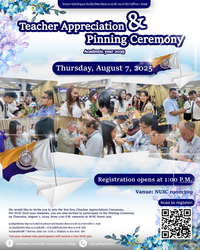 ขอเชิญนิสิตวิทยาลัยนานาชาติเข้าร่วมโครงการไหว้ครูวิทยาลัยนานาชาติ ประจำปีการศึกษา 2568