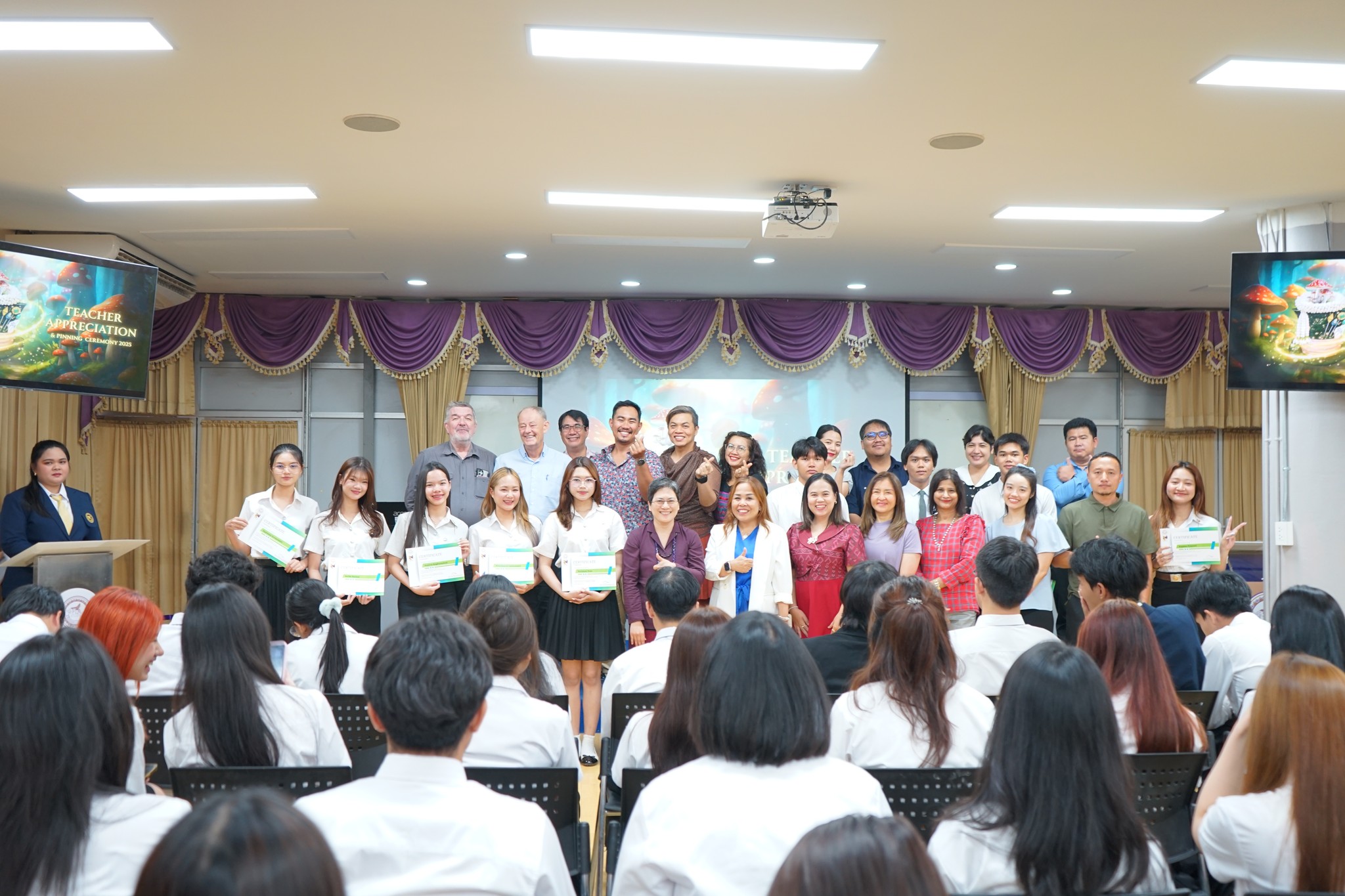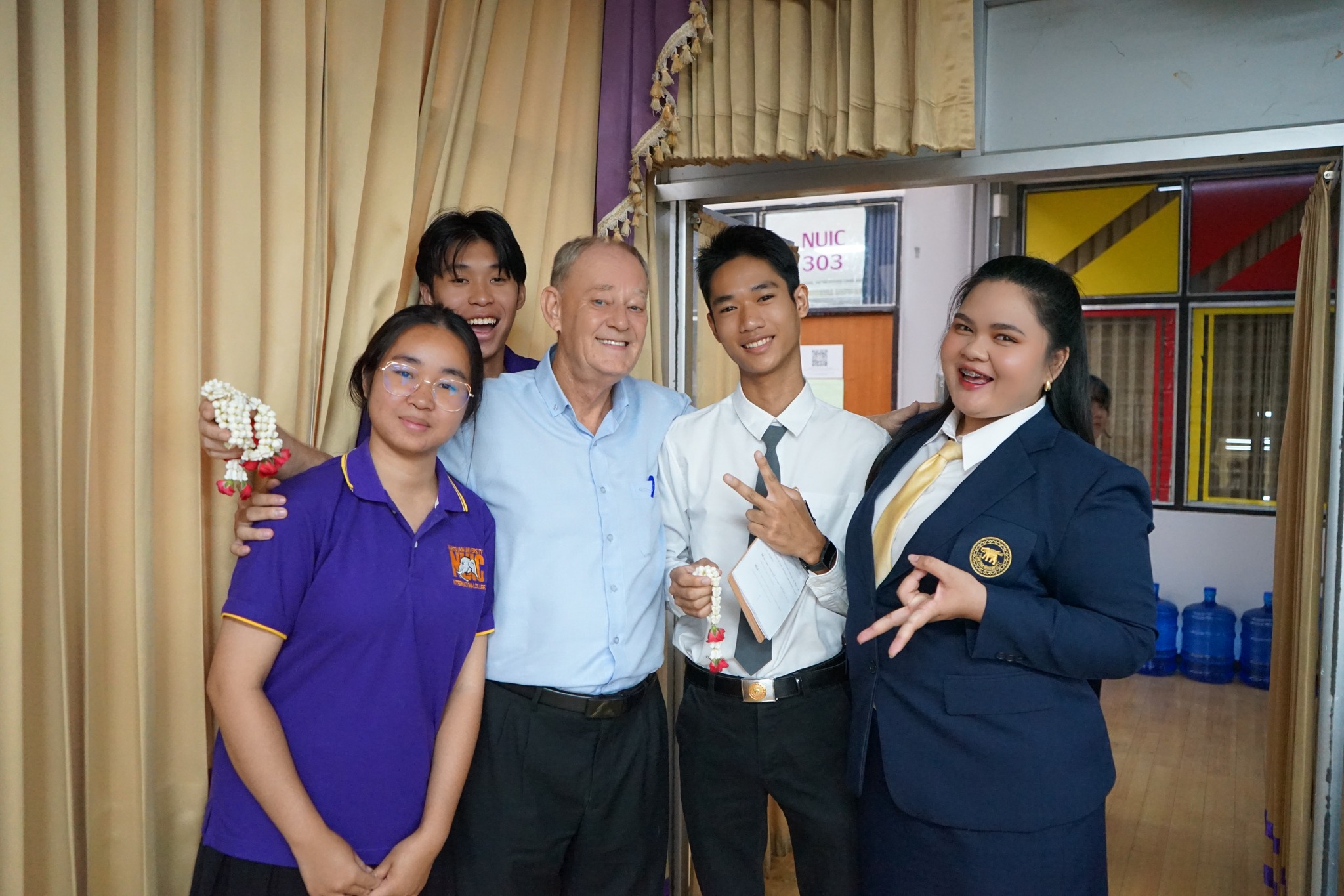 On August 7, 2025, NUIC held its “Teacher Appreciation Day,” also known as the Wai Kru Ceremony, to honor its lecturers. During this event, students expressed their gratitude and respect for their teachers by presenting them with roses. The Wai Kru Ceremony serves multiple purposes: it allows students to show their appreciation, pay respect to their teachers, and strengthen the student-teacher relationship.
