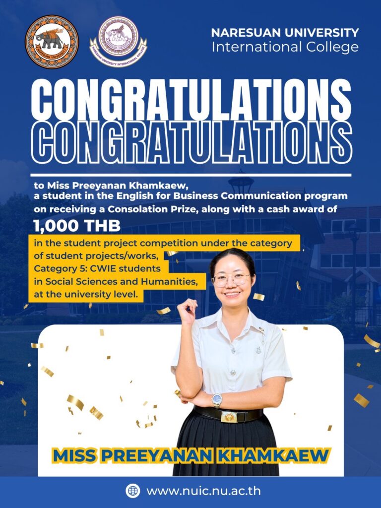 Naresuan University International College extends its sincere congratulations to